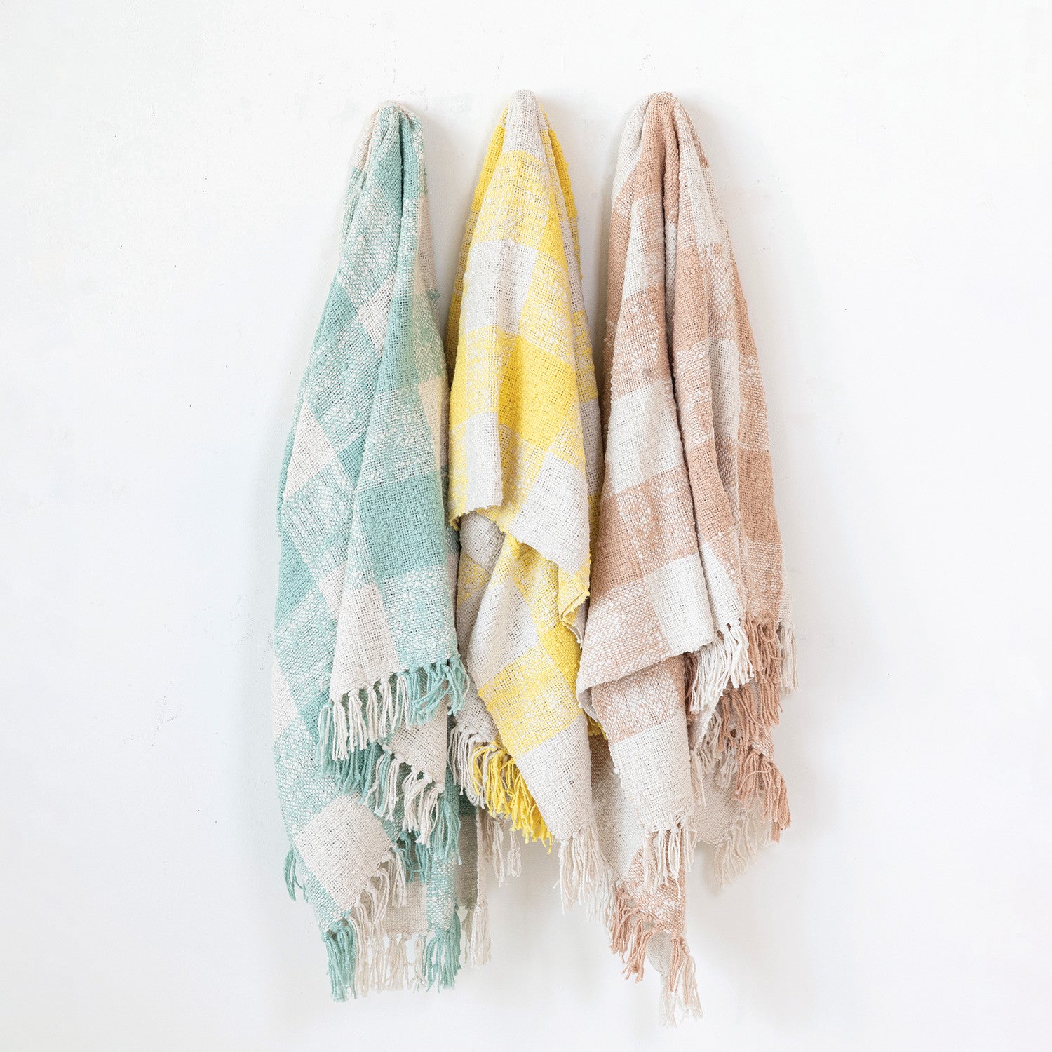Mint & Cream Plaid Hand-Woven Cotton Throw
