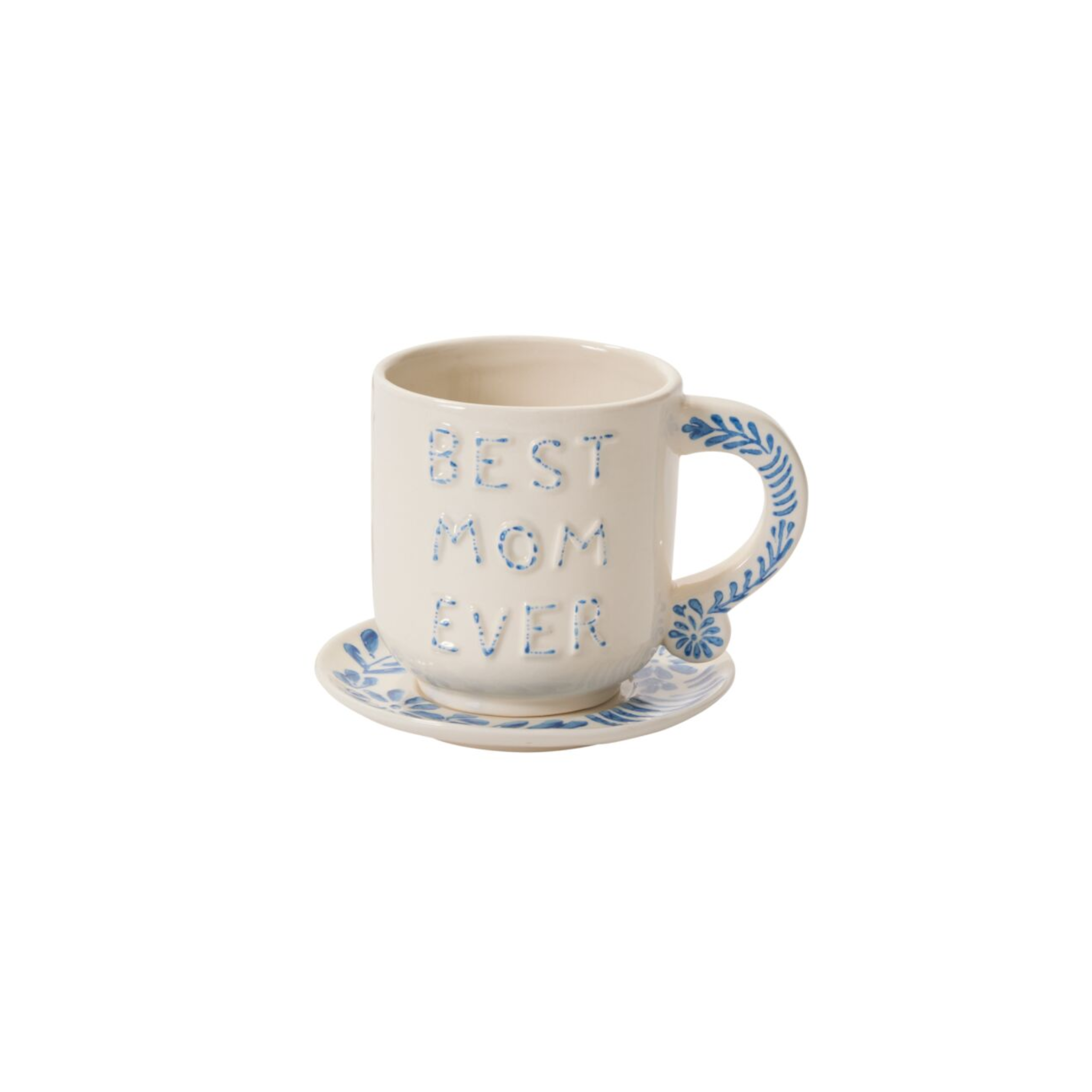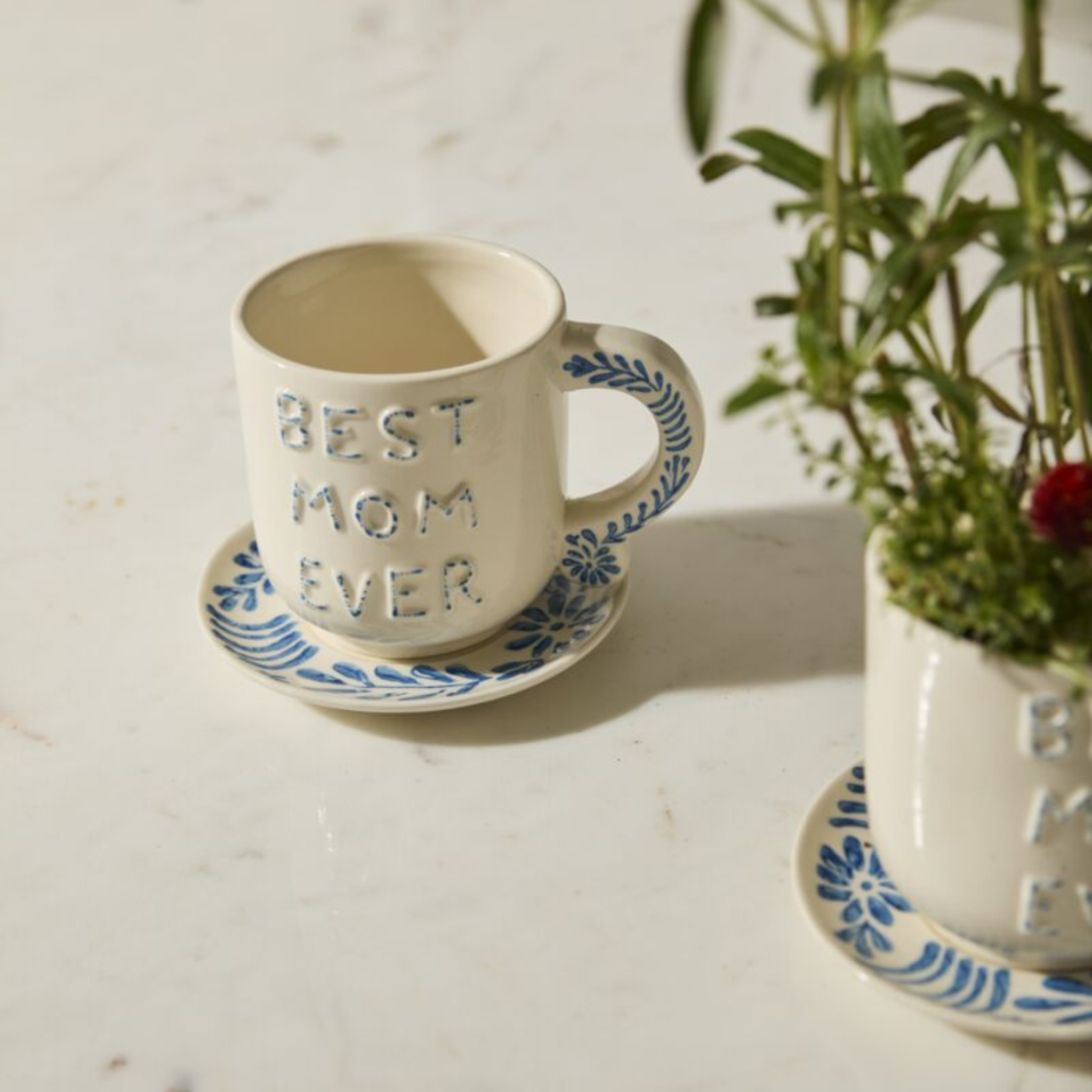 Blue & Cream Hand-Painted Stoneware Mug | 10 oz