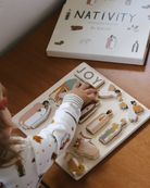A unique puzzle to pull out during Advent and the Christmas season. Can be a puzzle or stand up the pieces on their own to make your own Nativity Set! It includes the three kings, two angels, a camel, Mary and Joseph holding baby Jesus, Jesus in the manger, a donkey, sheep, and ox, and the letters for JOY.