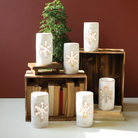 Light the way to your holiday party or hold vigil during a storm with this white clay snowflake luminary. Grab a set to line the walkway. This clay piece holds a candle for lighting the way.