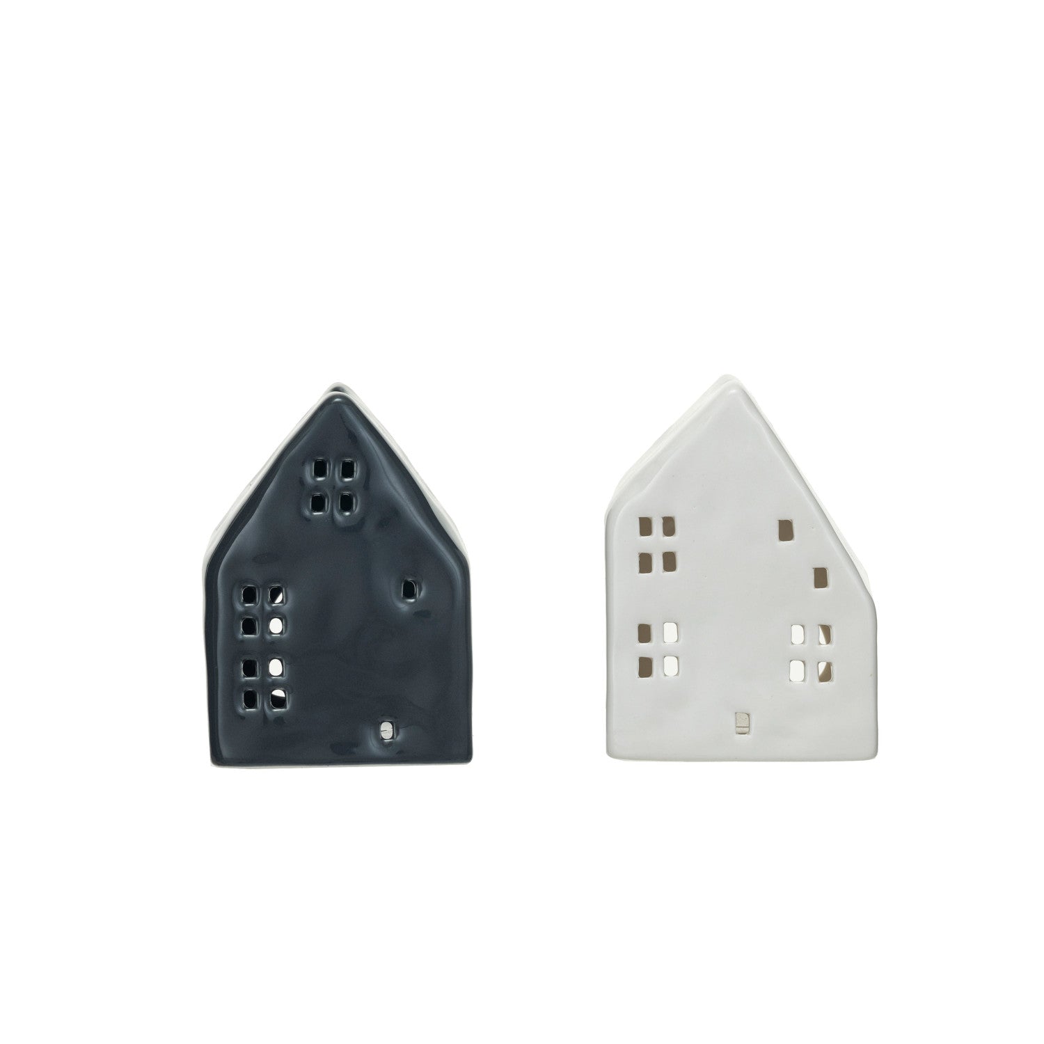 The the light of the holiday season shine in your home with this adorable cottage tealight candle holder, with a reactive glaze finish. Each will vary, candle not included.