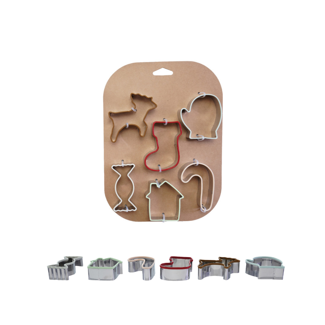 This set of six stainless steel cookie cutters brings festive cheer to your baking. Choose from two delightful styles to shape your treats into holiday favorites. Perfect for creating cookies that are as merry as they are delicious. Choose from 2 festive styles!