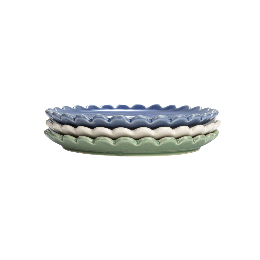 Adorned with a delicate scalloped edge and available in three elegant colors, this plate is a perfect addition to any table setting. Made with durable stoneware, it combines functionality with cottage vibes.