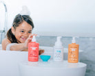 Our Strawberry 3-in-1 is clear, rich, dye-free, and created with natural-origin, fully disclosed aromas. It is dermatologist-tested, ultra-mild, Certified Tear-Free, and Leaping Bunny Certified Cruelty-Free. It can be used as a bubble bath, body wash, or shampoo.