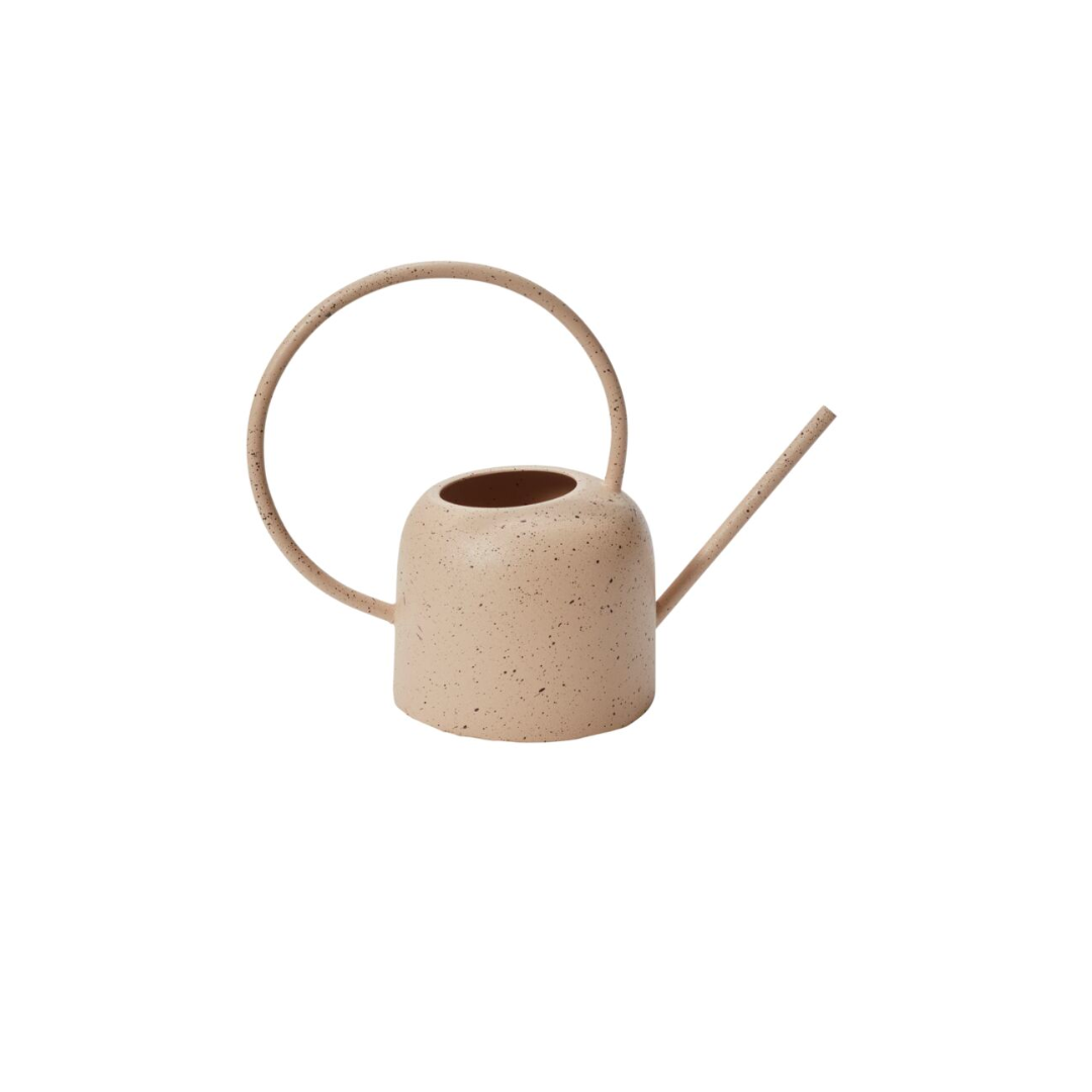 Smooth, sleek, & sophisticated, this metal watering can is both functional & stunning as a decorative tabletop piece. With its long, thin spout, large round handle, & speckled, matte finish, this chic, small-scale vessel is designed to reach plants in tight places for easy watering.