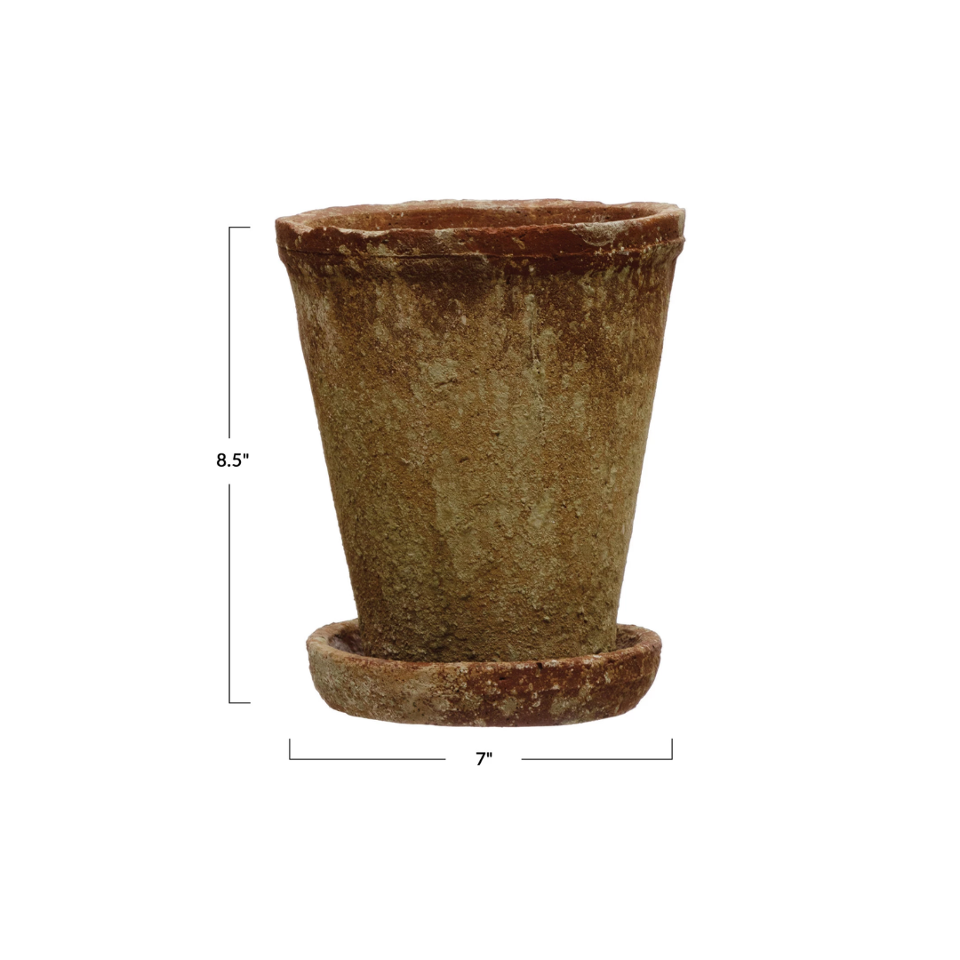 Terracotta Cement Planter with Saucer