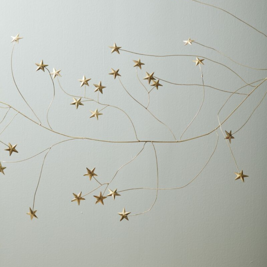 A delicate gold metal garland with pliable offshoots that have stars at the end. Arrange this airy garland down the center of a table or layer into any holiday display for a little extra glimmer.