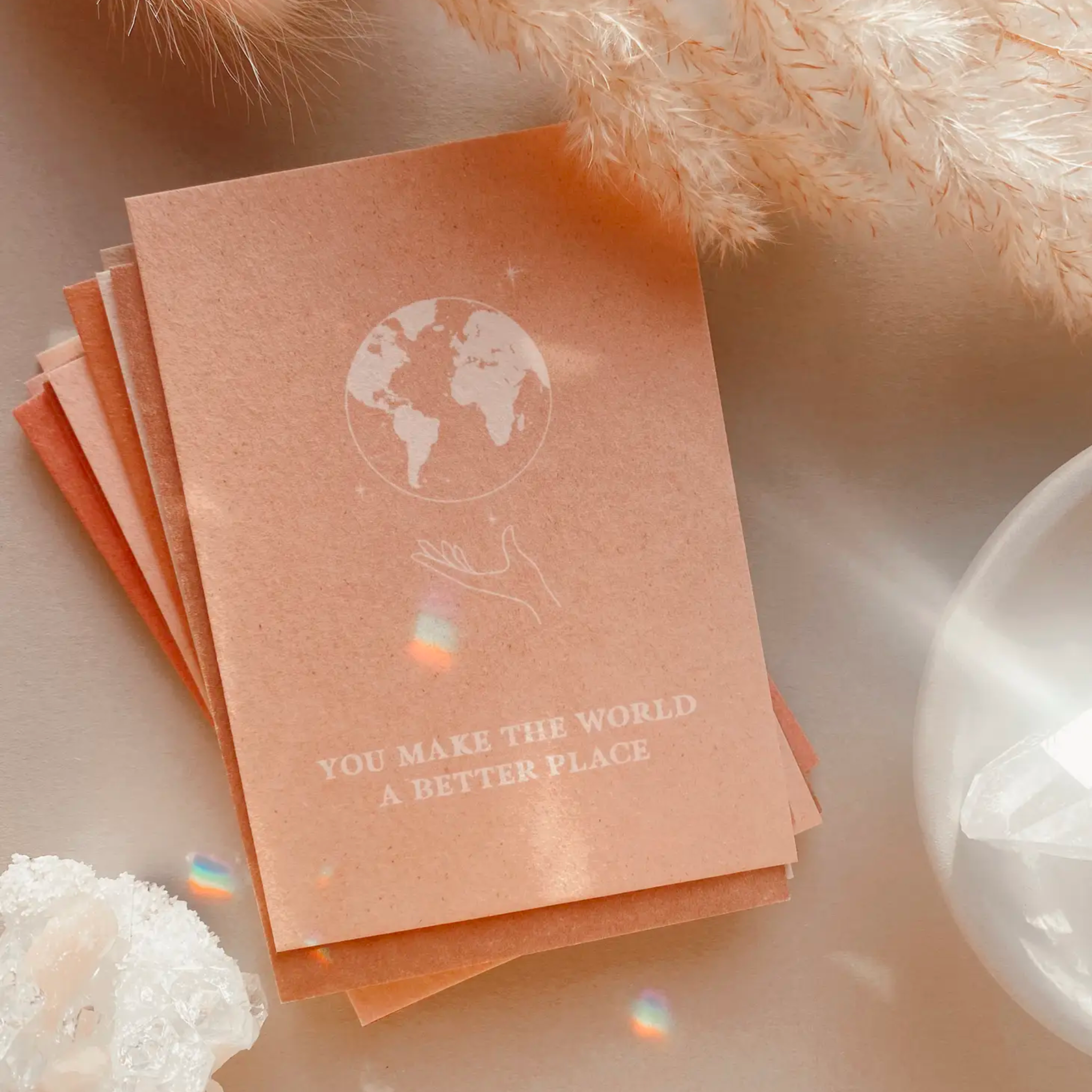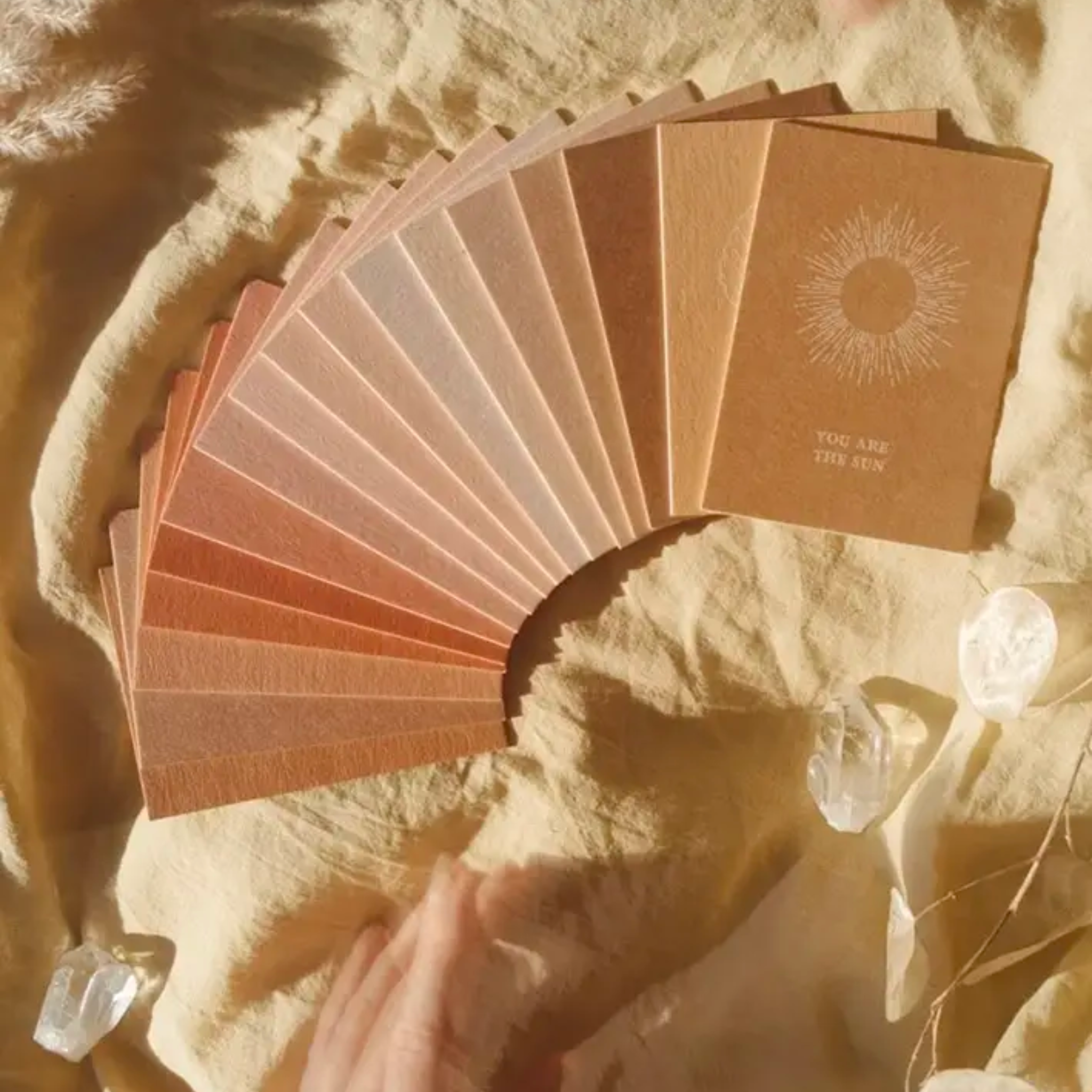 Beautiful box set of 17 affirmation cards. Draw cards for yourself, pin favorites to a vision board or gift them to a loved one. Each card is printed on high quality finnboard in a gorgeous palette of cream, nude, blush, rose, and sand tones. Let the power of positive affirmations invoke magic in your life. The back of the card is left blank for notes or thoughts.