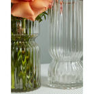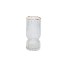 Set the table with elegance & sophistication with the glass Odette Vase, featuring a ribbed texture, cinched neck, & an exquisite gold metallic rim. Made from lightweight, textured glass, this cylindrical vase is a modern take on classic design that effortlessly complements everyday decor or special events, filled with any style of florals.