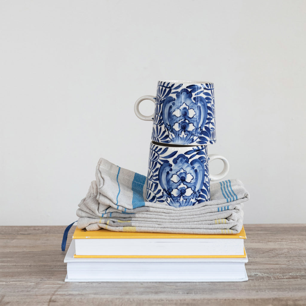 Blue & Cream Hand-Painted Stoneware Mug | 10 oz