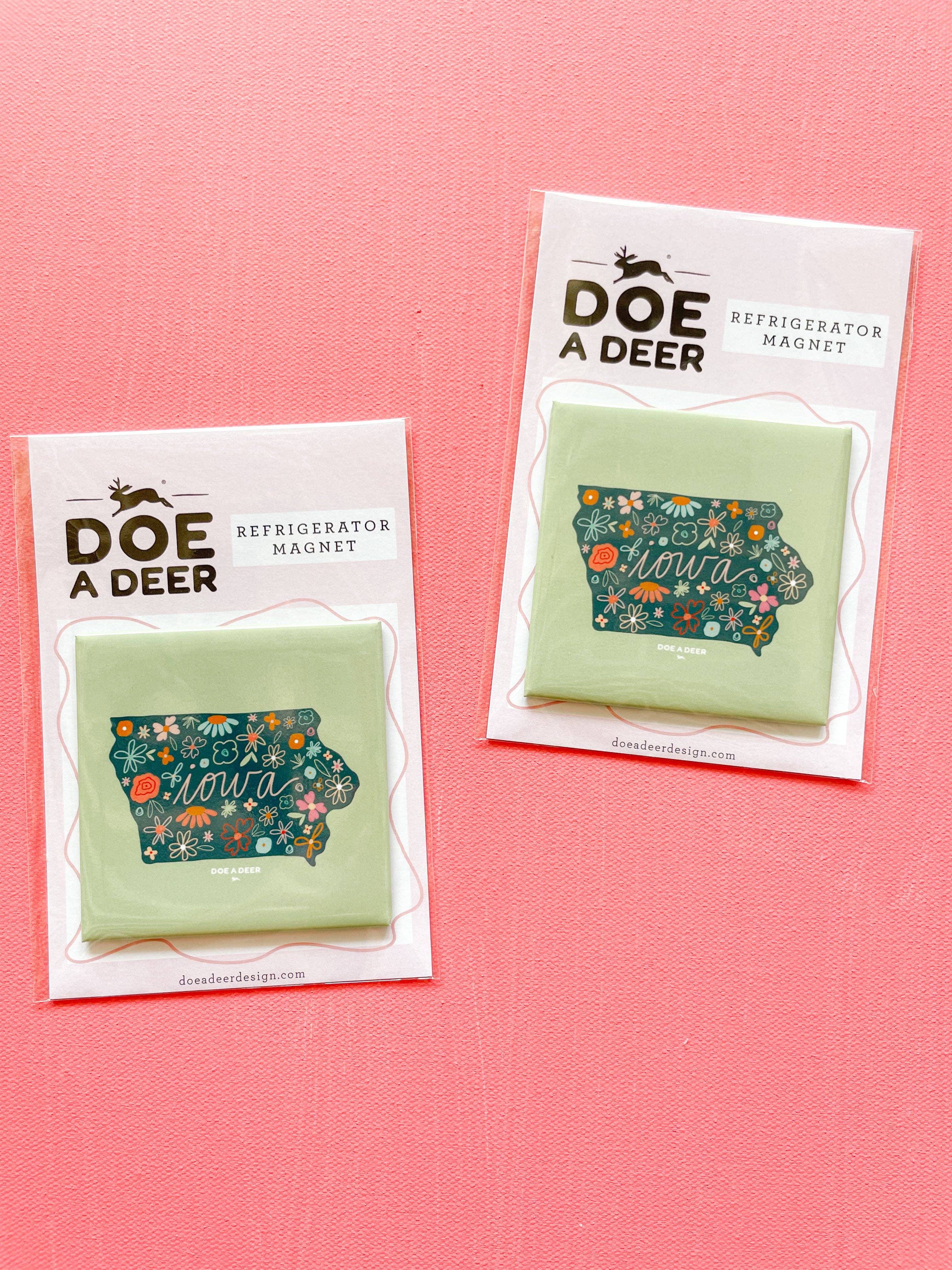 Hard button-style magnet for the Iowans. Entire back is magnetic. Packaged in a cello sleeve with a card stock backer. Meaningful, unique design that comes on high-quality, American made materials.