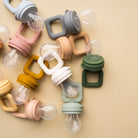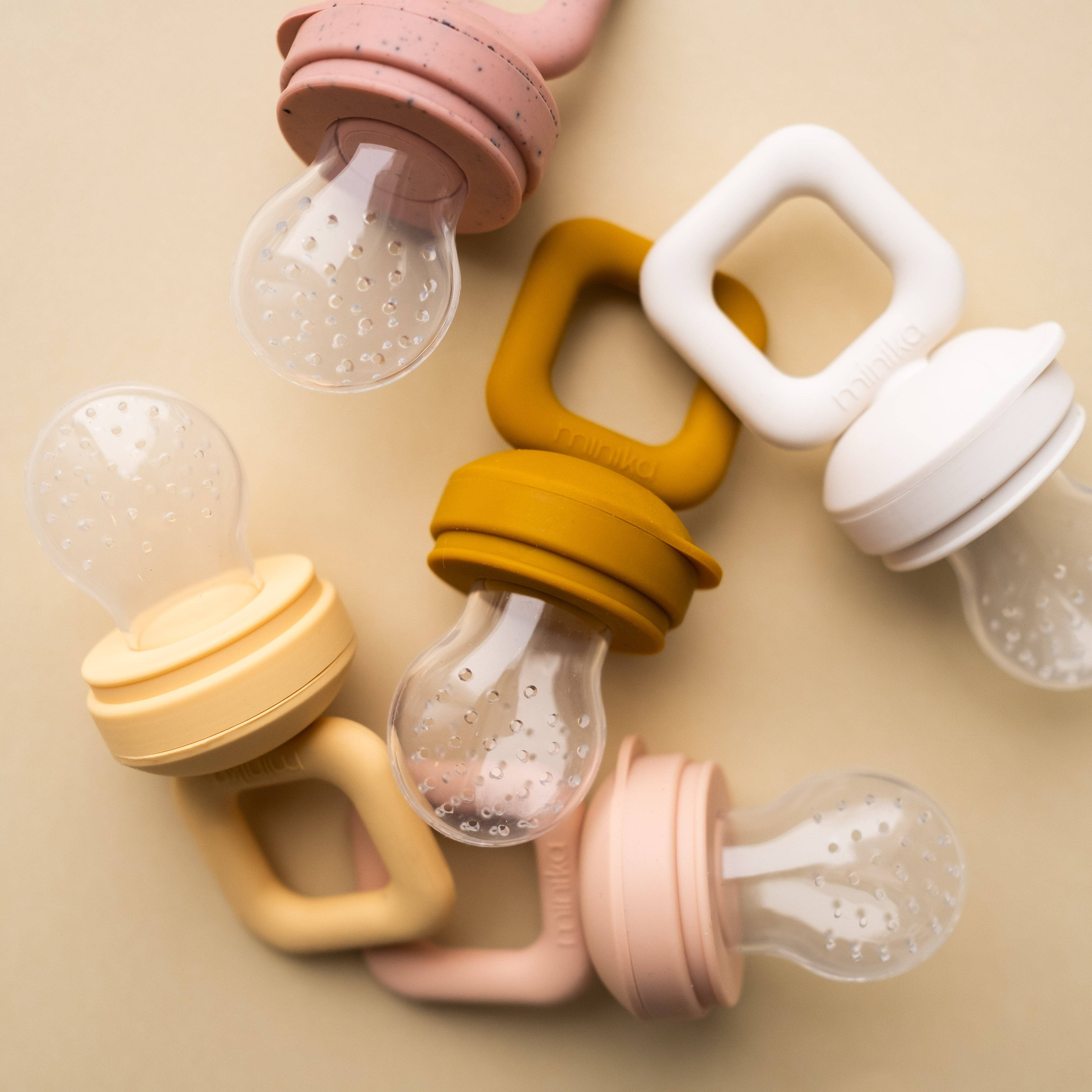 Soft silicone food teether feeder with small holes for easy feeding that only allow small, digestible pieces to pass through. Simply place fruit, vegetables, or meat in the silicone pouch and seal tightly. You can also use with frozen breast milk to help alleviate teething pain & discomfort.