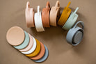 Make snack time at home or on the go a breeze with these foldable, silicone snack cups! Made with food grade silicone, these cups collapse down for easy storage and then expand out for snack time and include a lid for on the go munching. nack cup with lid.
