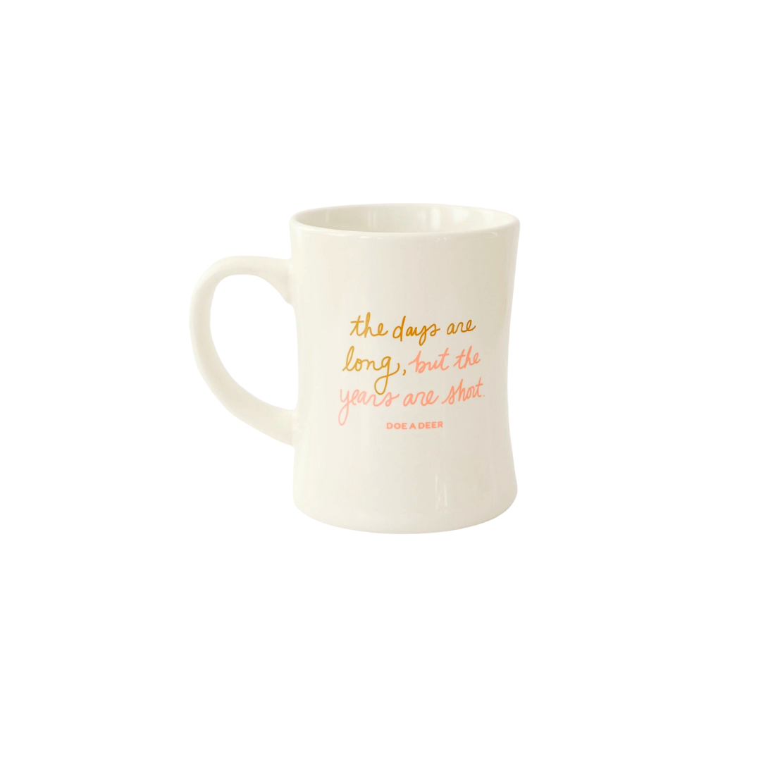 The Days are Long...so we hope you have a good strong cup of joe, Mama! Gear up for a day of all that motherhood as in store for you with this adorable reminder. The Days are Long but the Years are Short. So fill up your cup (literally and figuratively) with whatever you need to slow down and enjoy. Gift this mug to a mom friend or a new mom who is experiencing her first go with these long days!