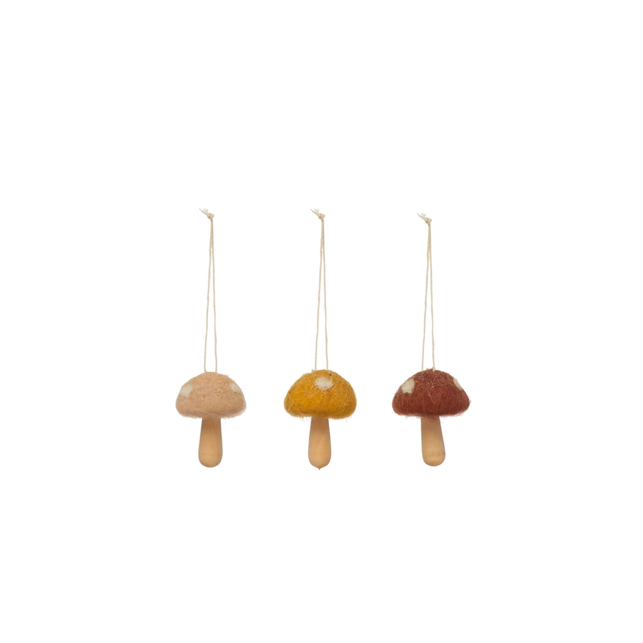 A touch of whimsy to your tree or home with our Wool & Wood Mushroom Ornaments. Choose from 3 colors or mix and match for a magical forest of mushrooms!