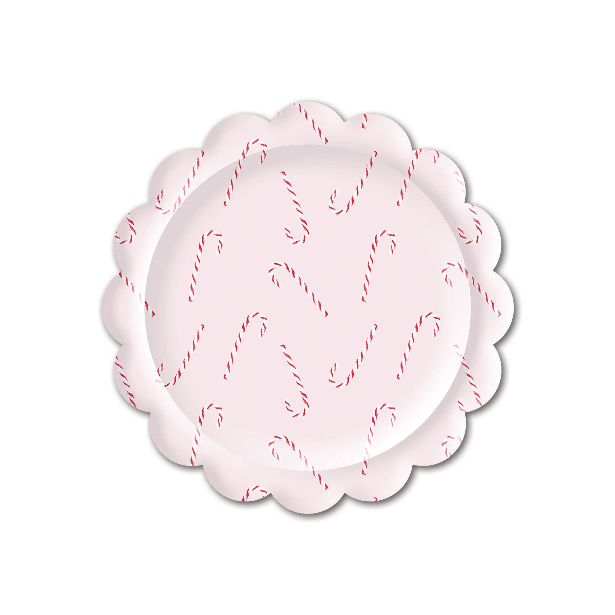 Christmas cookies and sweet treats will look even better on these scalloped edge candy cane scatter plates. From bright holiday tables, to handing out Christmas treats to loved ones, these whimsical paper plates bring festive holiday spirit this Christmas season. Includes 8 scalloped paper plates.