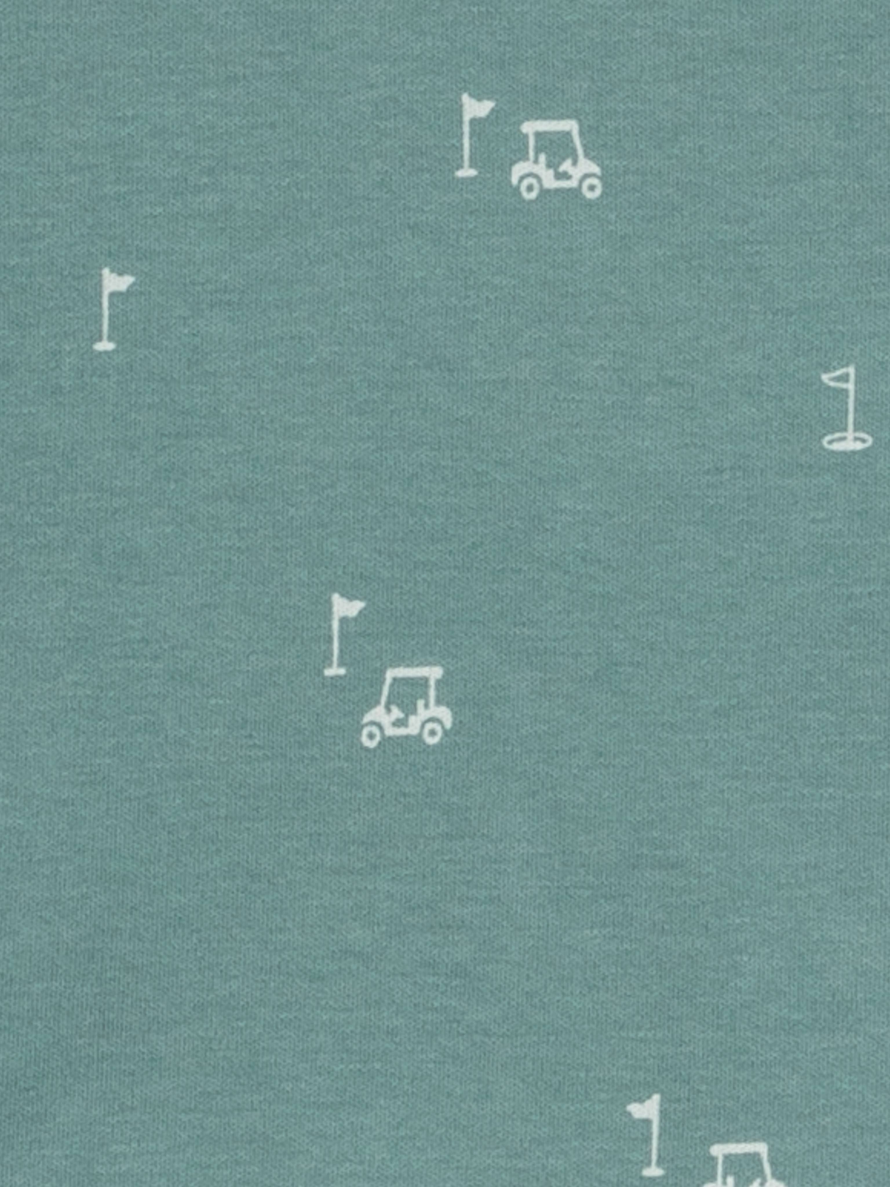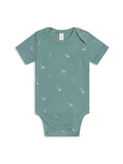 Buttery soft with an adorable print in a laguna green & powder color, this organic short sleeve bodysuit is an essential piece for any growing baby.