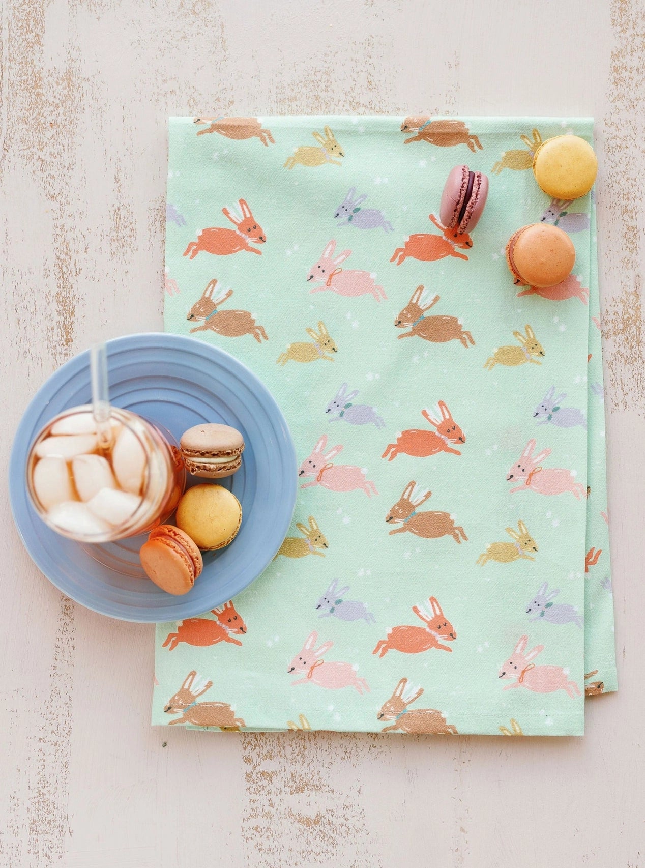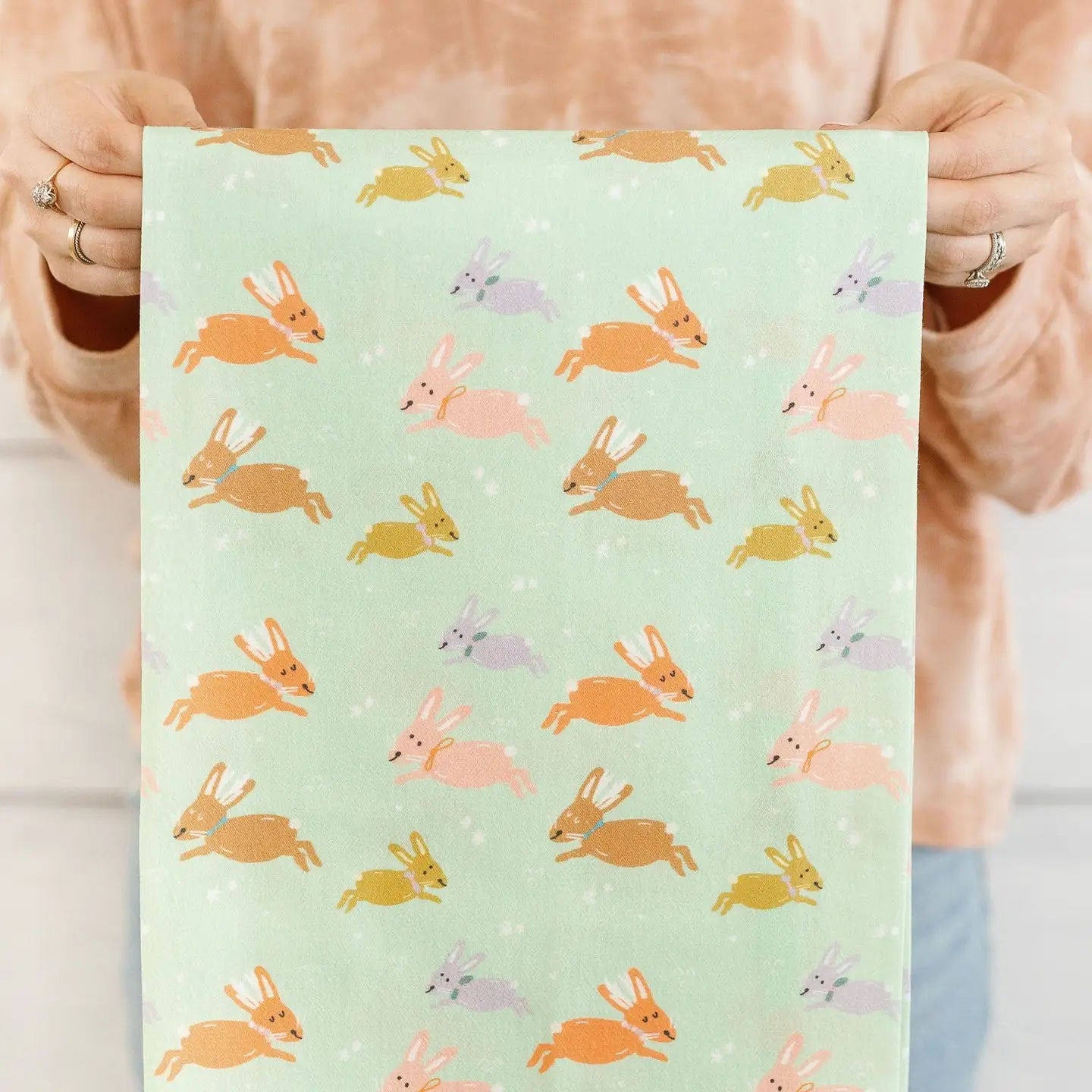 Introducing the Jumping Jackalope – a delightful addition to any kitchen. This flour sack towel features a whimsical full-pattern design of the mythical jackalope, adding a touch of charm to your kitchen this spring!