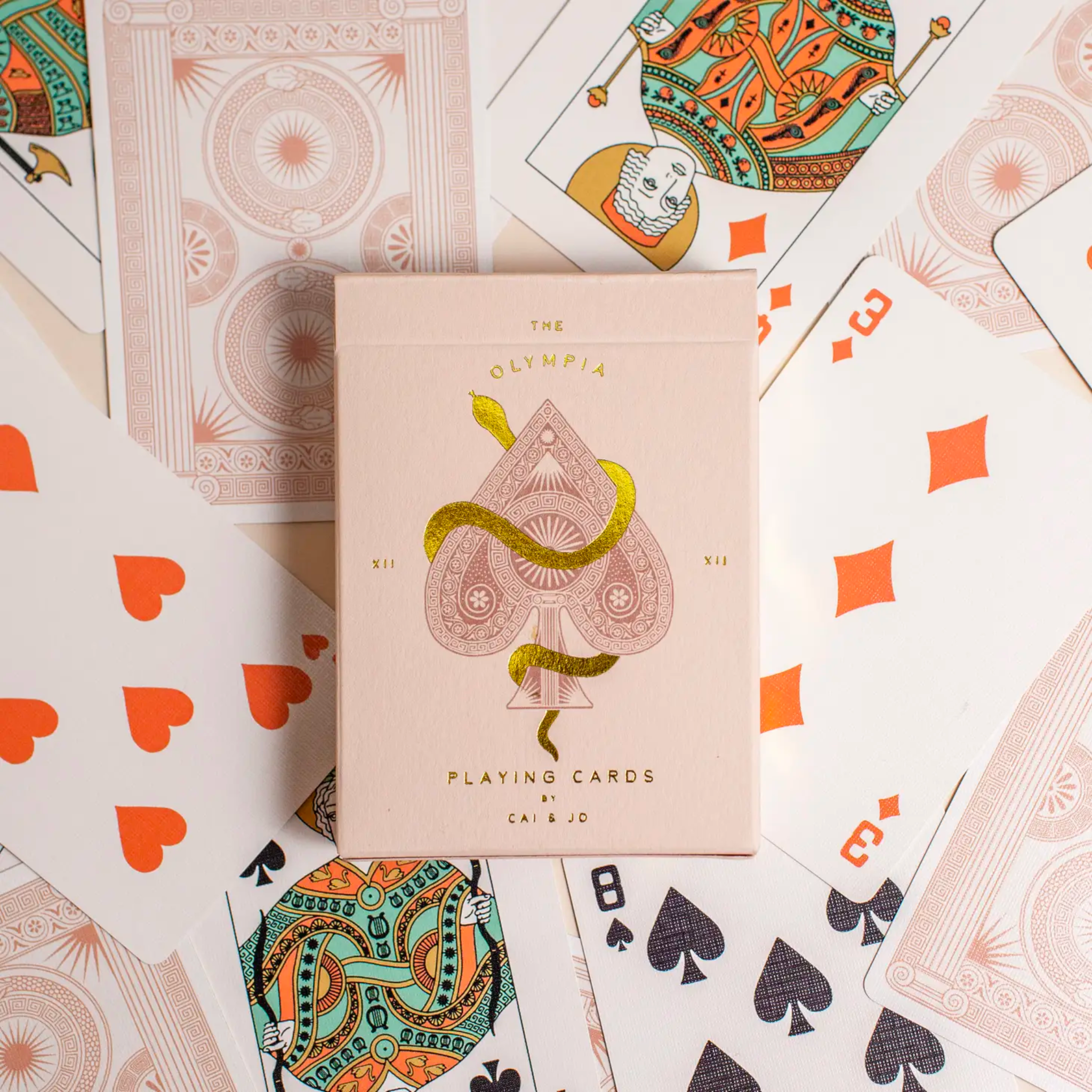 Elevate your games nights with the Olympia playing cards, featuring intricate illustrations inspired by the mythology of the Twelve Olympians.