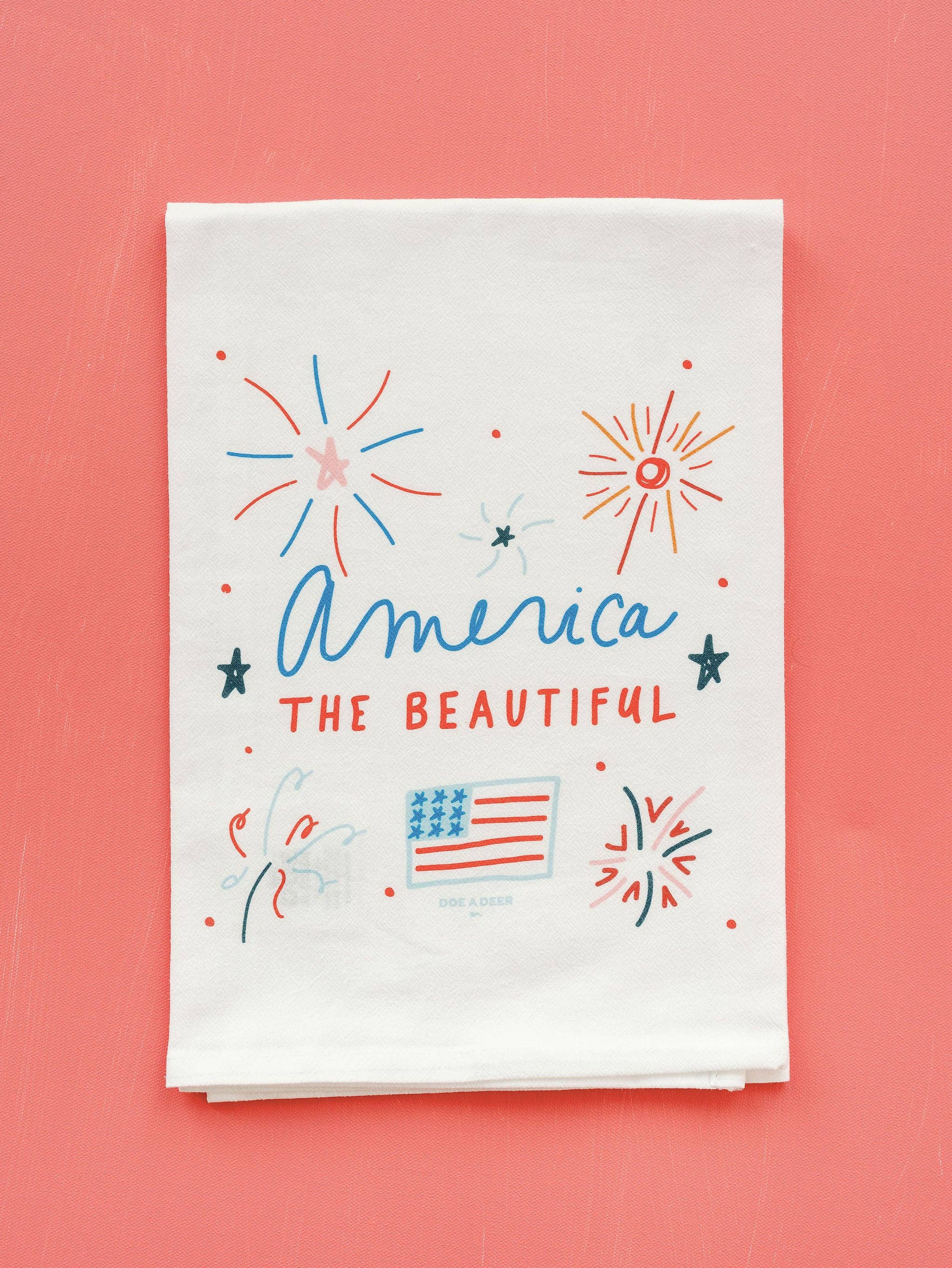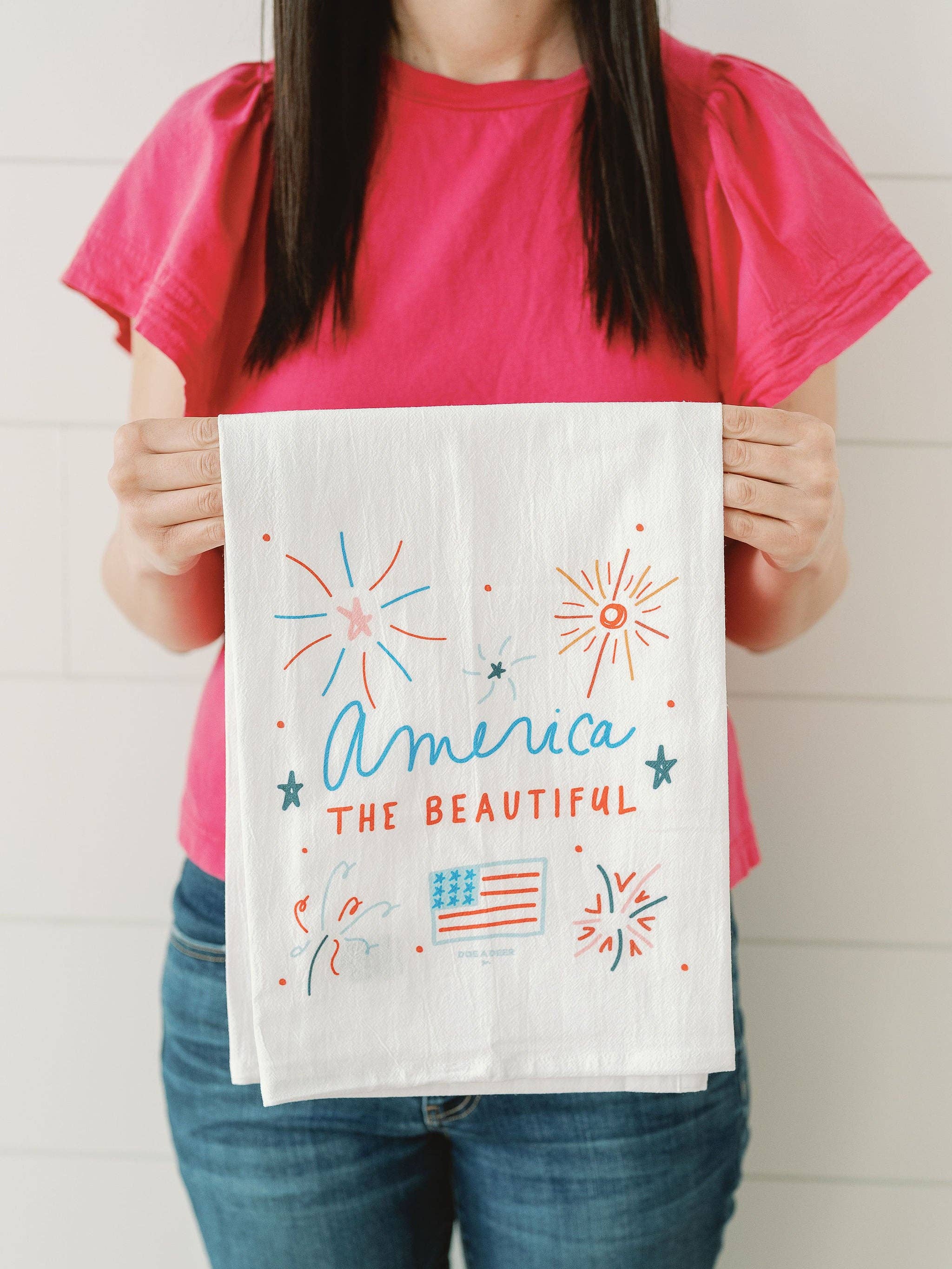 Truly beautiful! Full of fireworks, reds, whites, and blues, and our signature scripted handwriting, we think this towel will add just the right amount of patriotic vibe to your kitchen. The perfect summer barbeque hostess gift. We are loving layering up your oven handle with this towel and our Let Freedom Ring Towel. 28 x 29 inches of absorbent (and adorably designed) flour sack cotton: