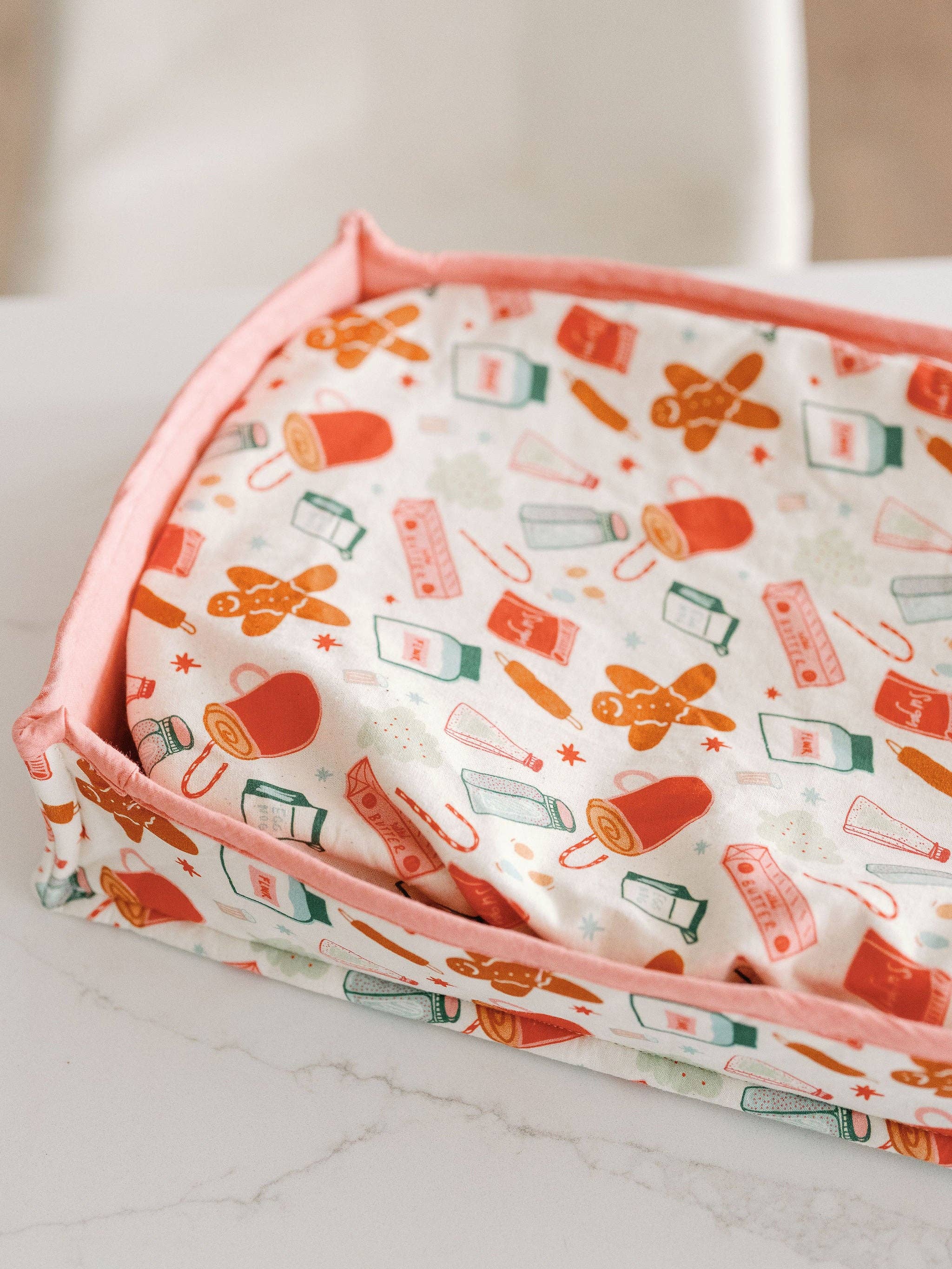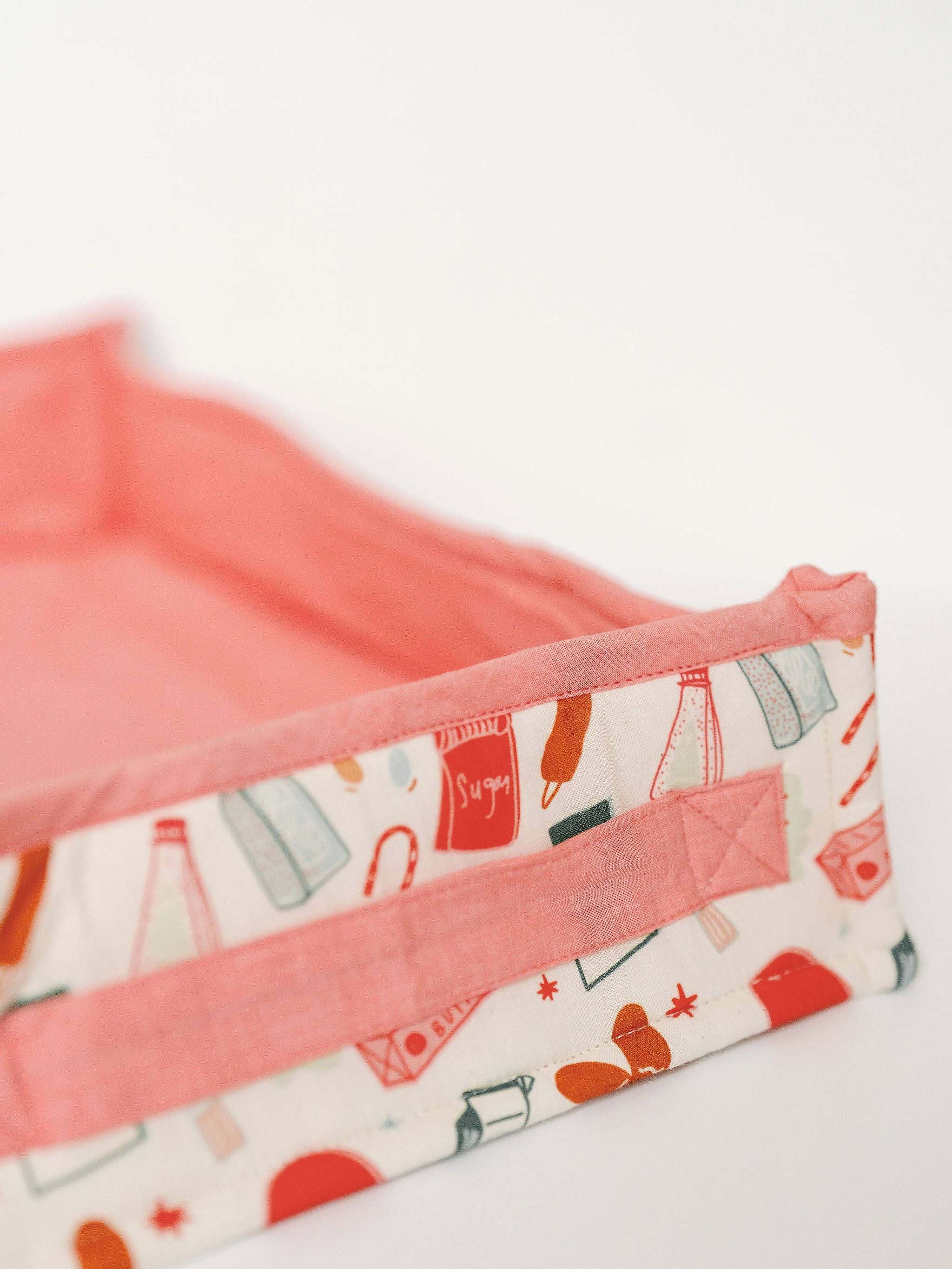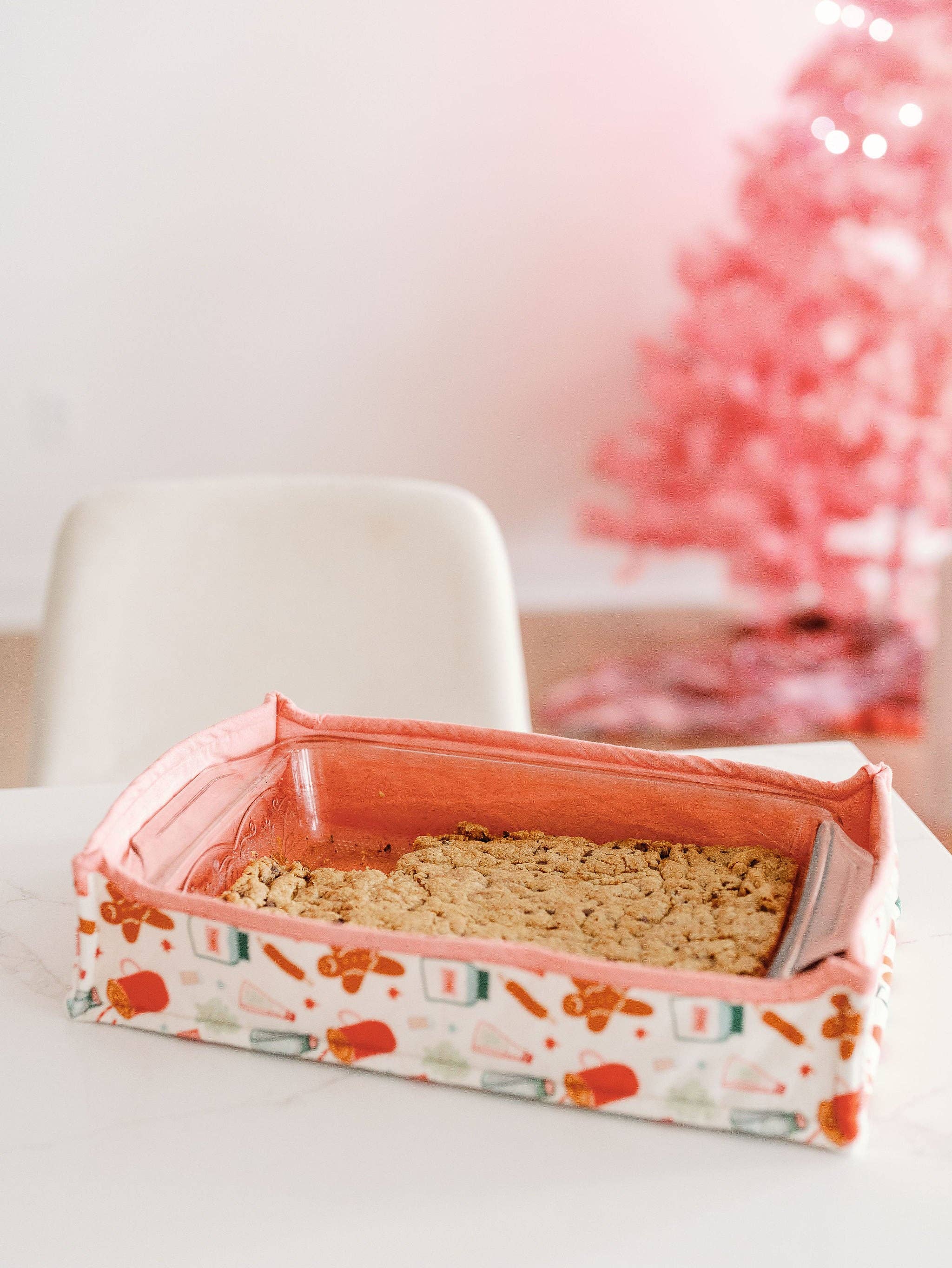 Pack up your hot and ready cheesy potatoes in this bad boy! Not only is it a cute carrier for transport, but doubles as a cute cover for the dish to be displayed in. This design features little illustrations of cute kitchen staples like salt & pepper shakers, cookies, gingerbread men, and more!