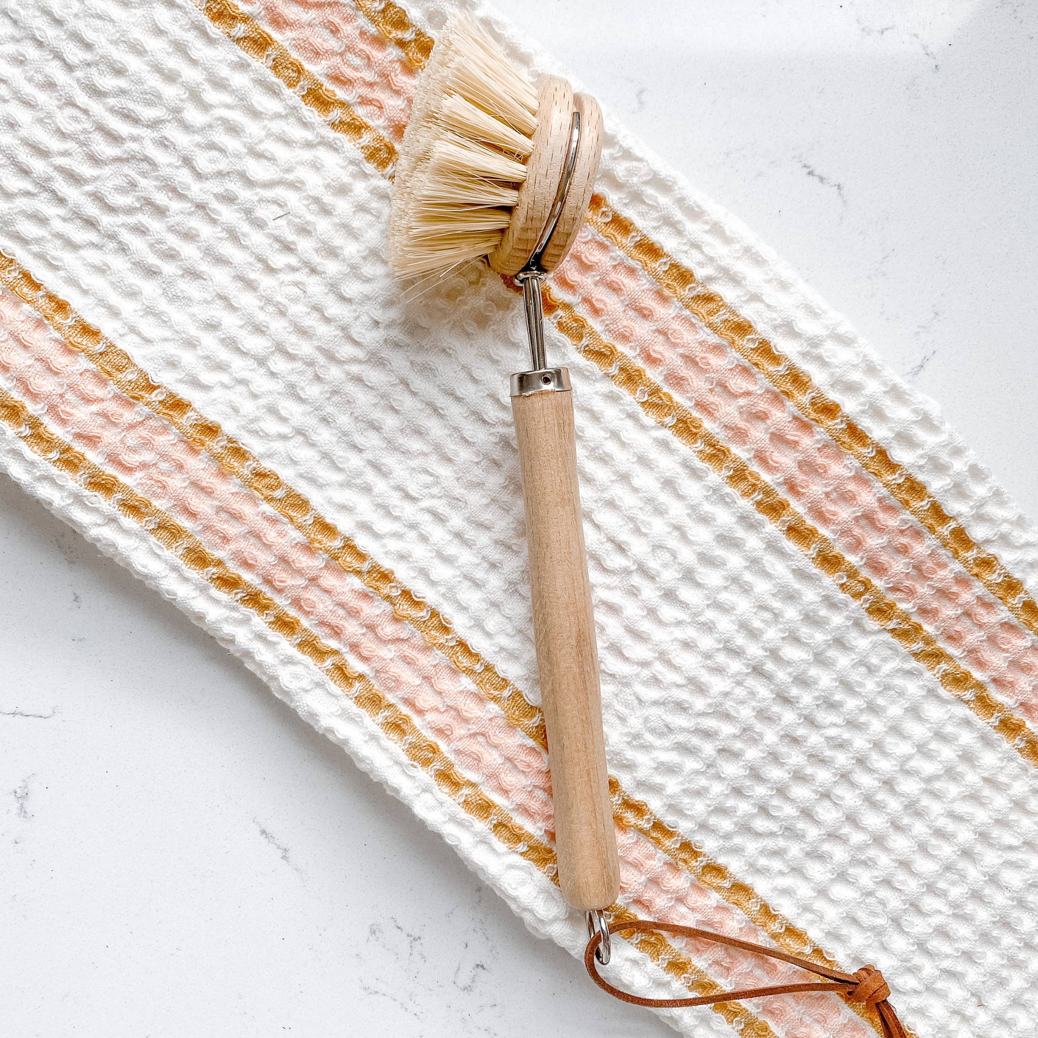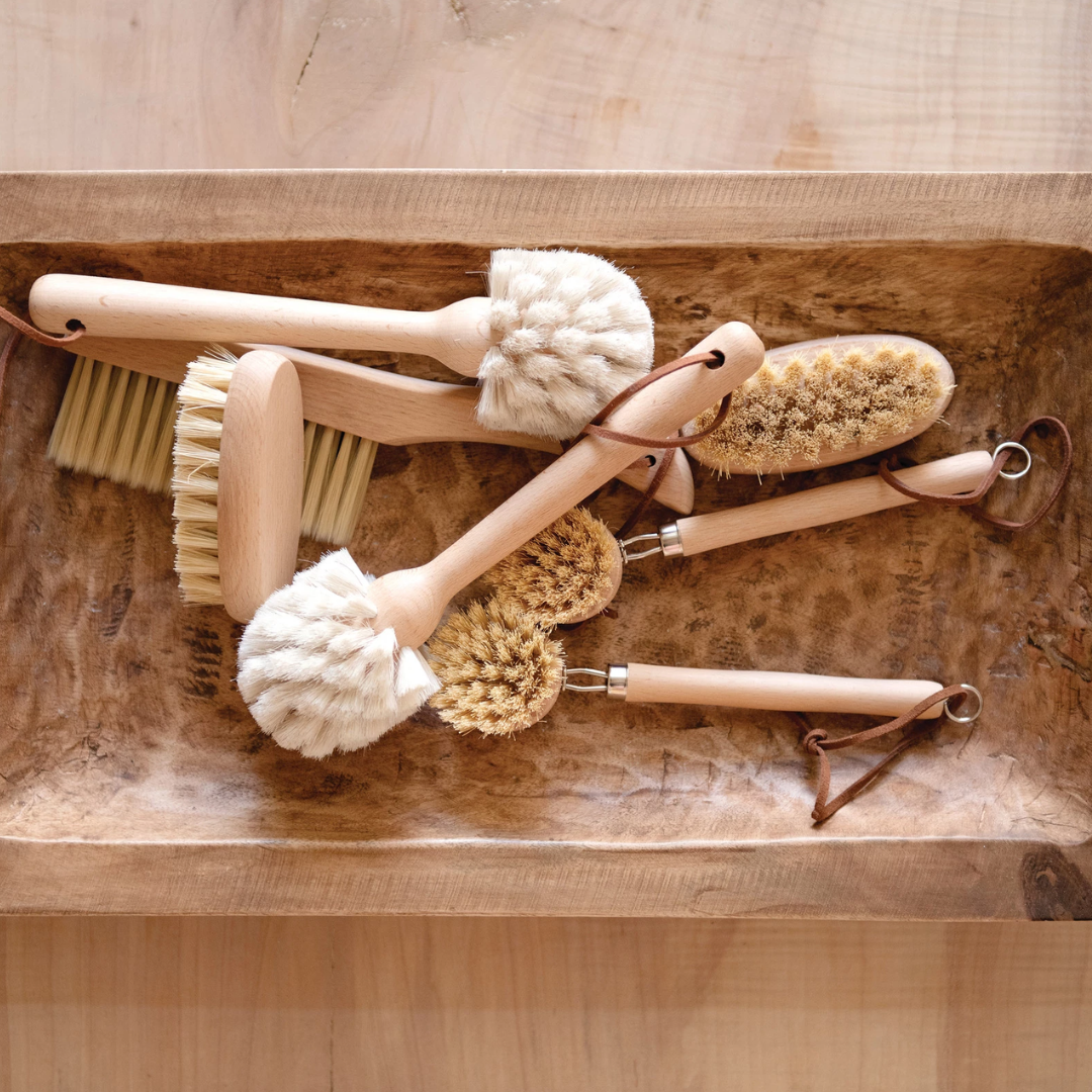 For the dishes with hard to reach places or the sink that needs cleaning, this brush is perfect! Made of first class beech wood and a leather strap.