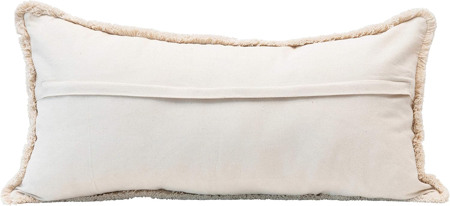 Cotton lumbar pillow with rabbit & fringe. Zippered pillow cover with pillow insert included.
