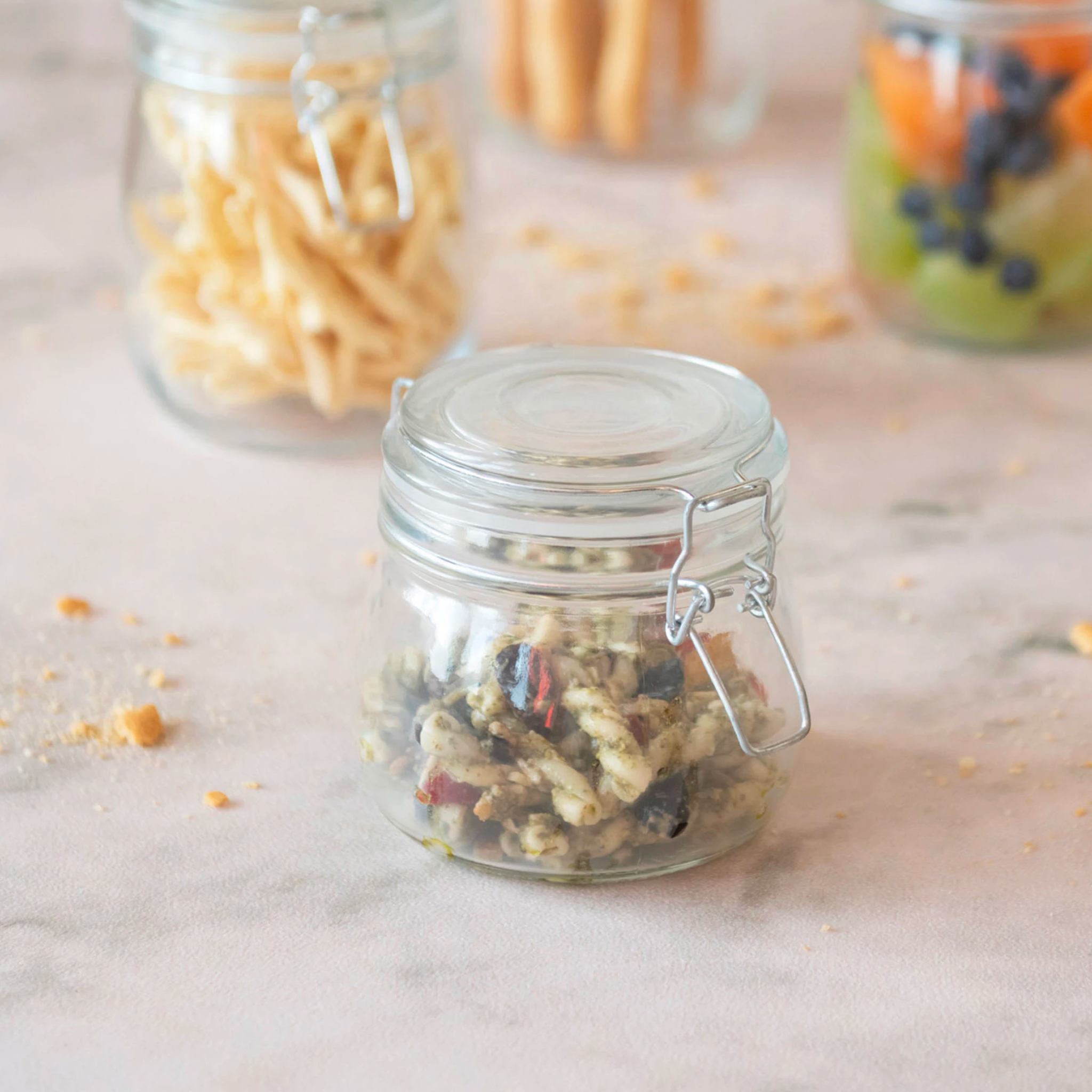 Size: 4-1/4" Round x 4"H 16 oz. Glass Jar w/ Clamp Lid