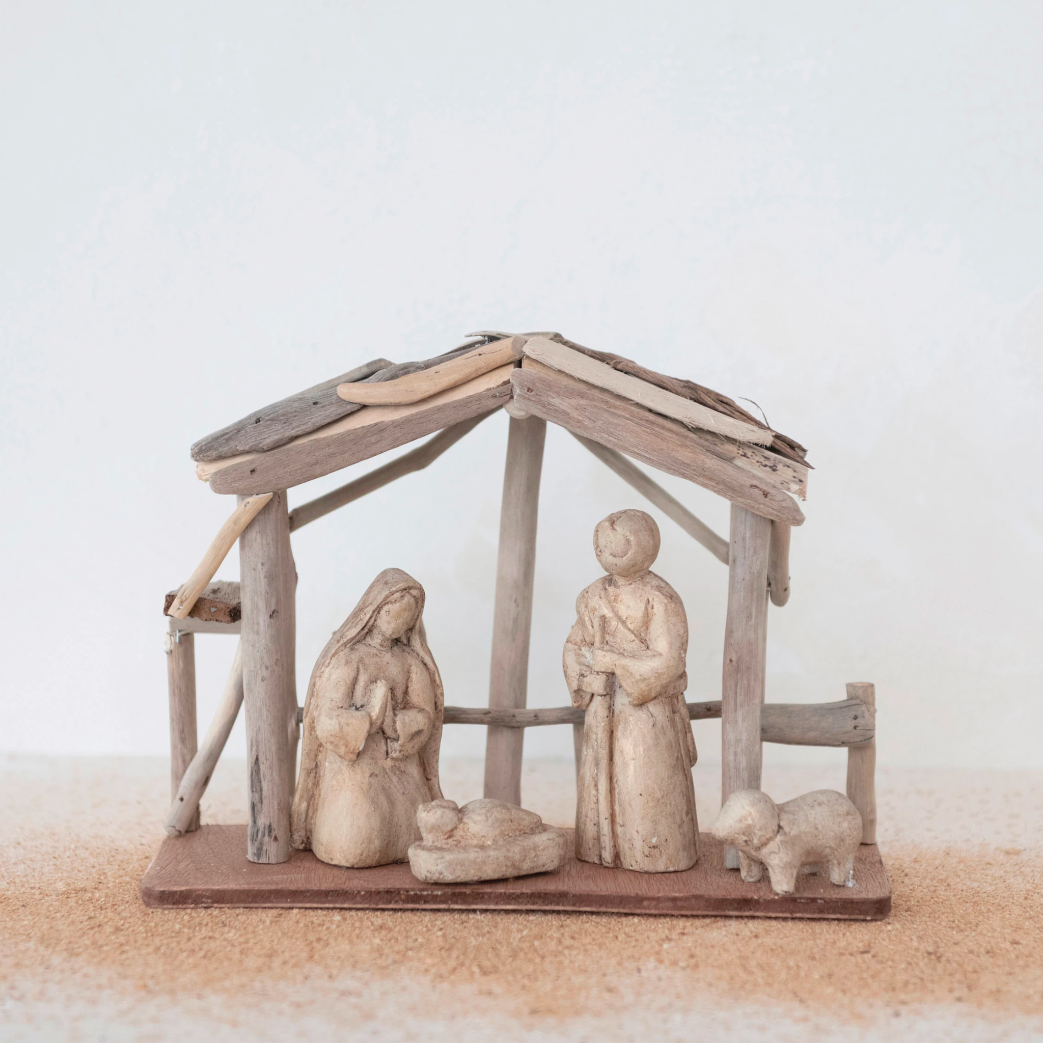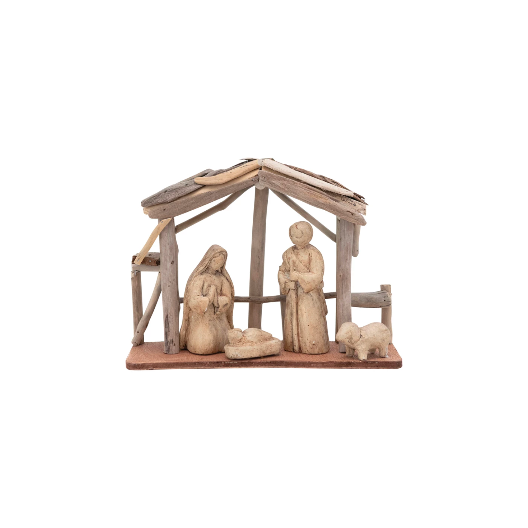 Handmade Driftwood & Paper Mache Nativity