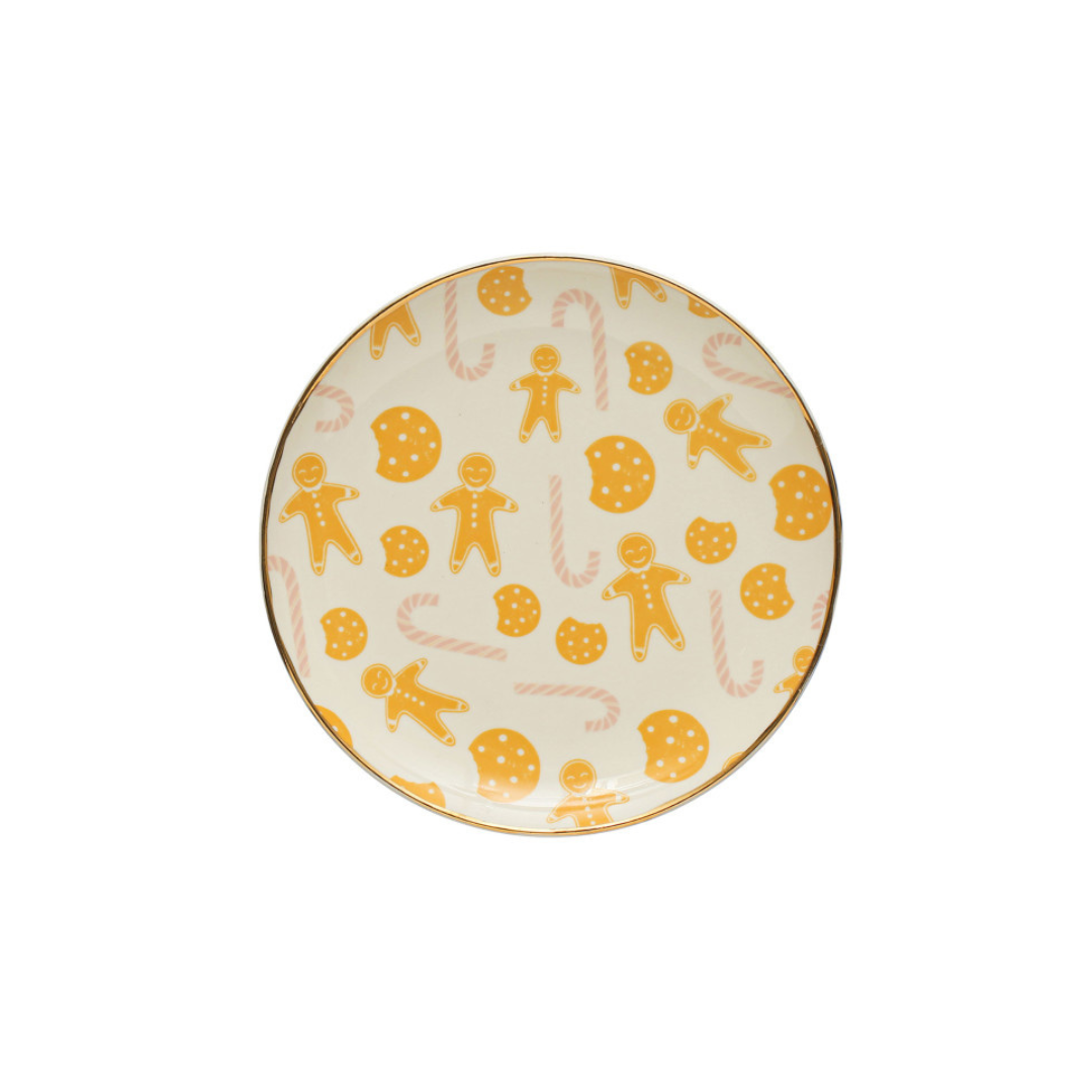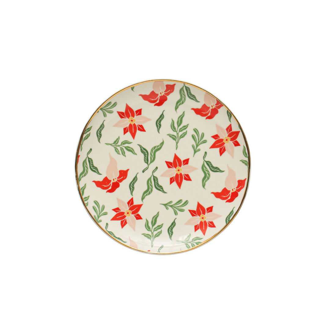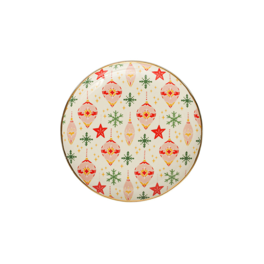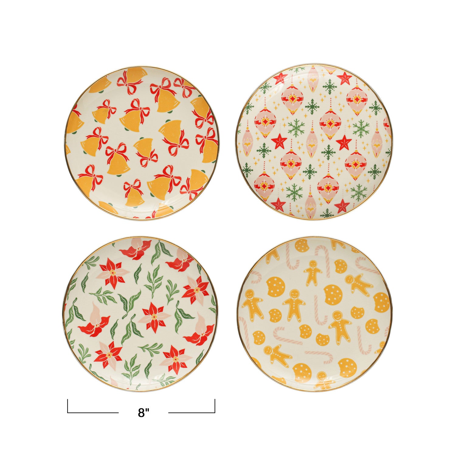 Bring some festive spirit to your tablescape or shelf this winter with our holiday pattern stoneware plates with gold electroplating on the rim! Choose from 4 festive designs.