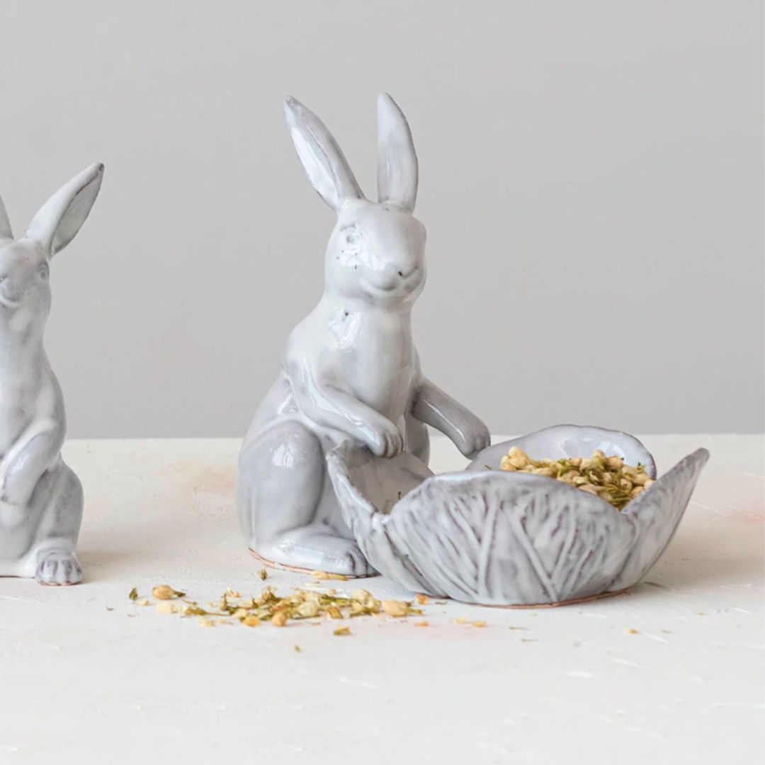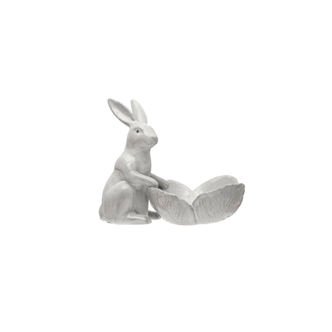 Stoneware Rabbit with Flower Dish